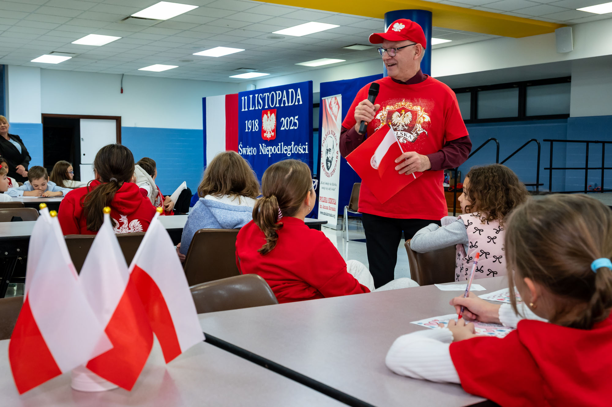Z okazji Święta Niepodległości w naszej szkole odbyły się wyjątkowe warsztaty patriotyczne pod hasłem „Kocham Polskę”. Spotkanie przygotował i poprowadził p. Stanisław Wolsza, który w ciekawy i inspirujący sposób przybliżył uczniom najważniejsze wydarzenia z historii naszej Ojczyzny. Podczas zajęć uczniowie: rozmawiali o symbolach narodowych oraz ich znaczeniu, układali hasła patriotyczne i tworzyli własne plakaty, rozwiązywali quiz historyczny, wspólnie śpiewali fragmenty pieśni patriotycznych, wysłuchali opowieści