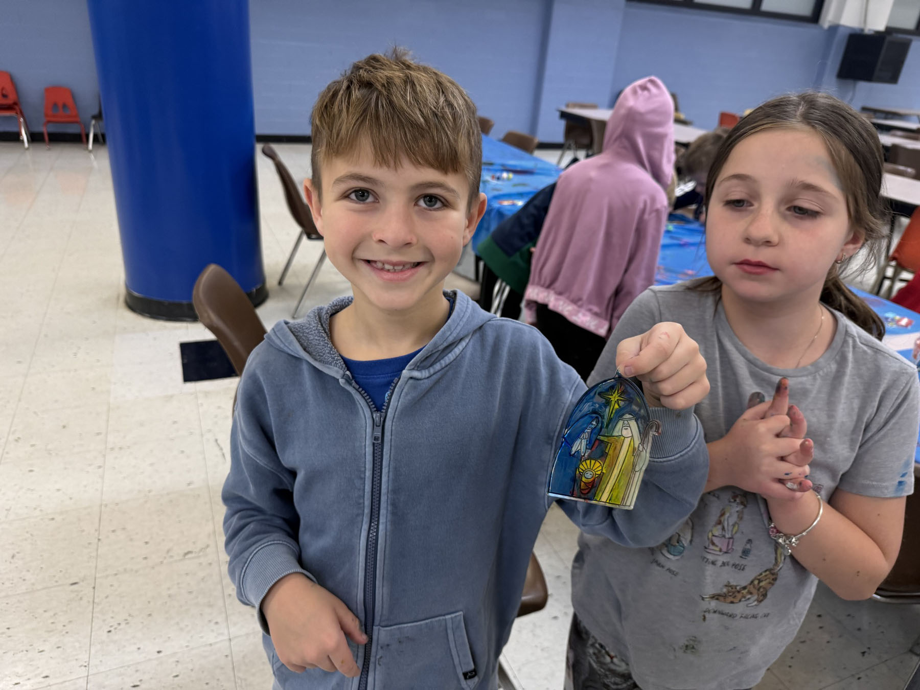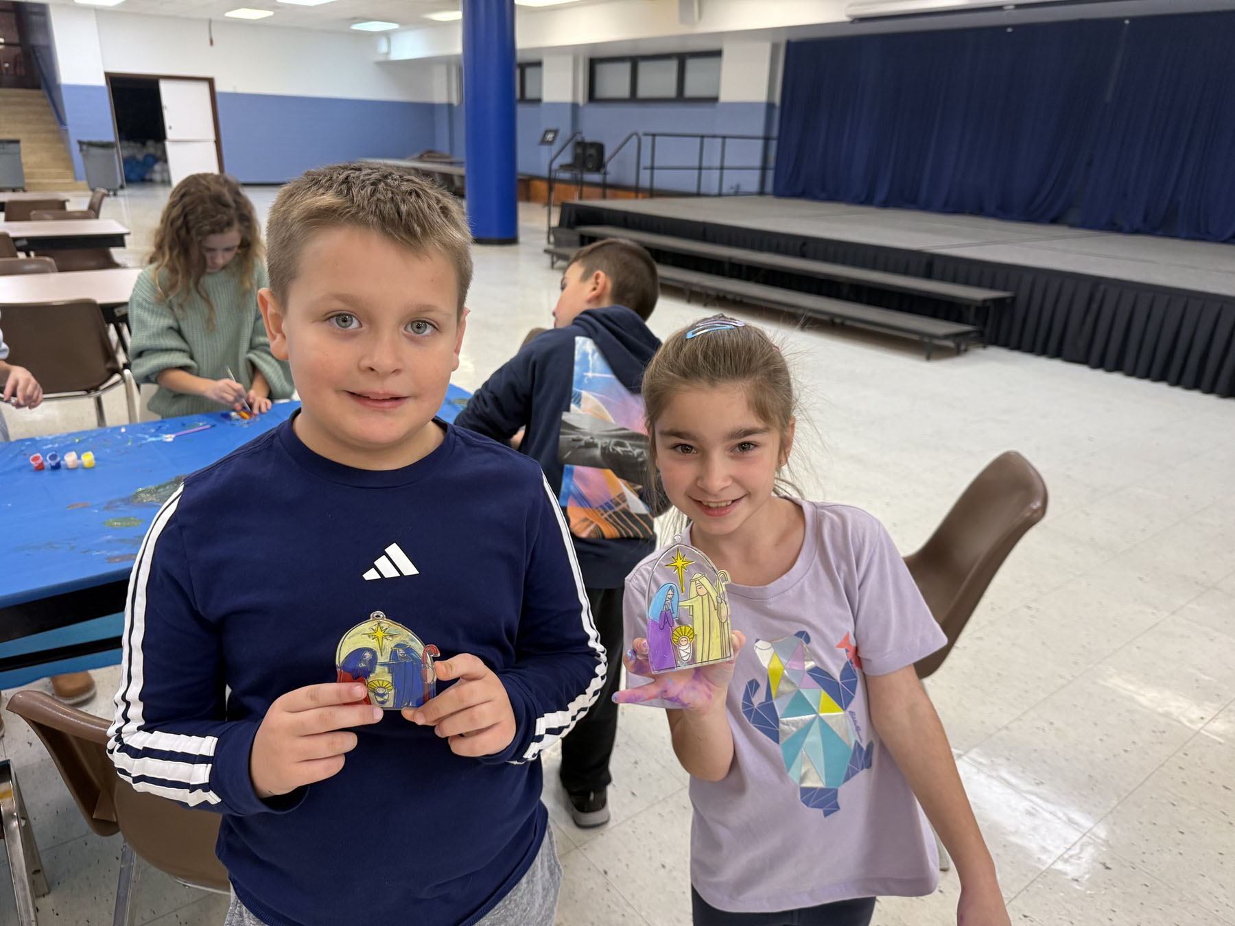 Na zajęciach w klasie trzeciej, podczas lekcji religii, uczniowie wzięli udział w kreatywnych zajęciach plastycznych o tematyce bożonarodzeniowej. Dzieci kolorowały plastikowe, przestrzenne szopki, używając kolorowych farb i wykazując się dużą starannością oraz pomysłowością. Praca ta sprawiła im wiele radości i pozwoliła rozwijać zdolności manualne. Zajęcia były także okazją do rozmowy o znaczeniu Bożego Narodzenia i postaciach obecnych w szopce. Wykonane prace stały się piękną pamiątką oraz elementem świątecznej dekoracji.