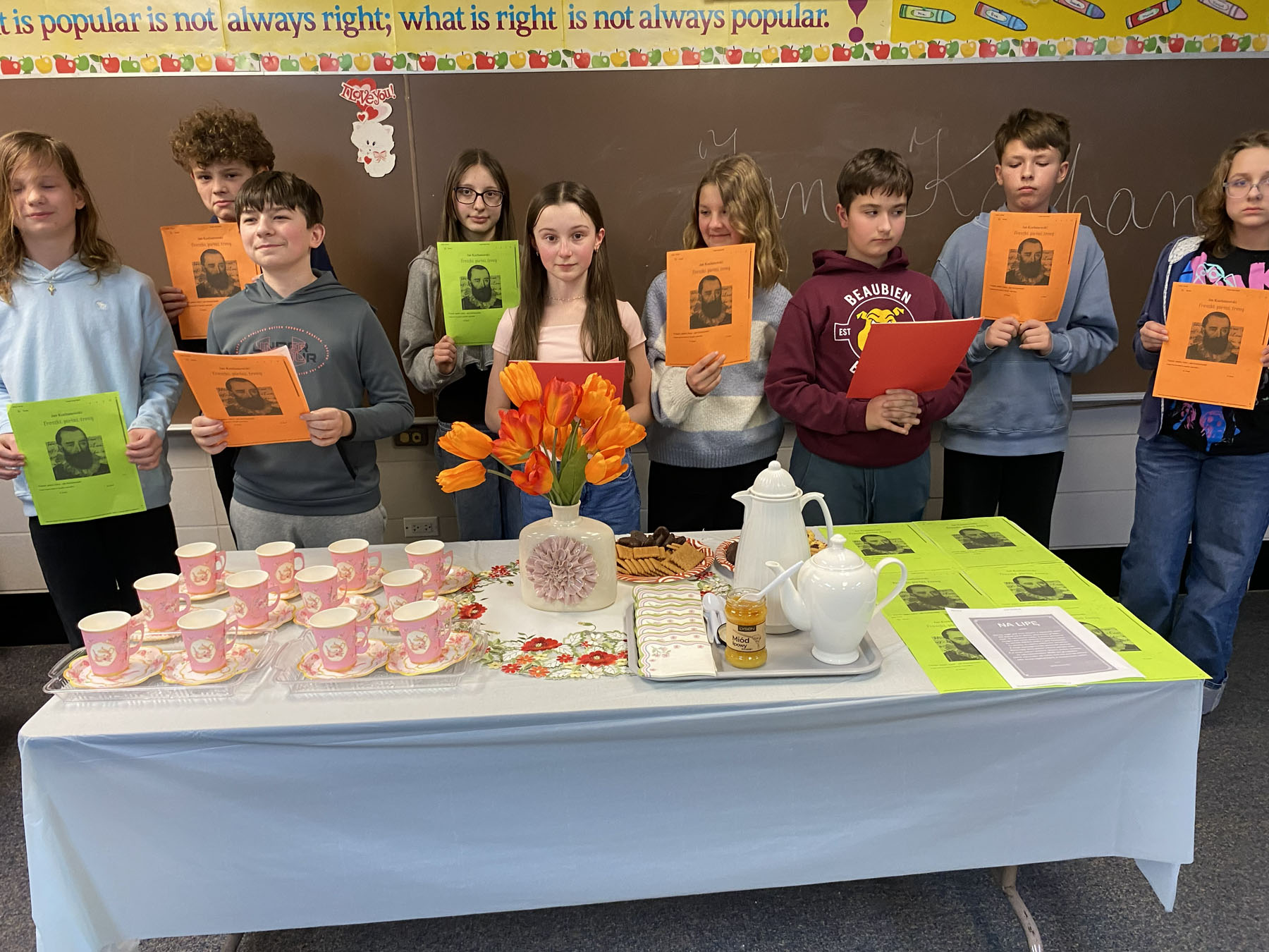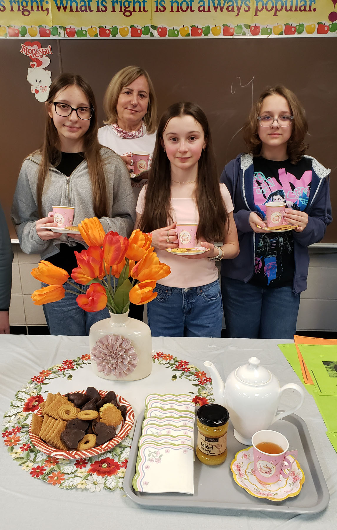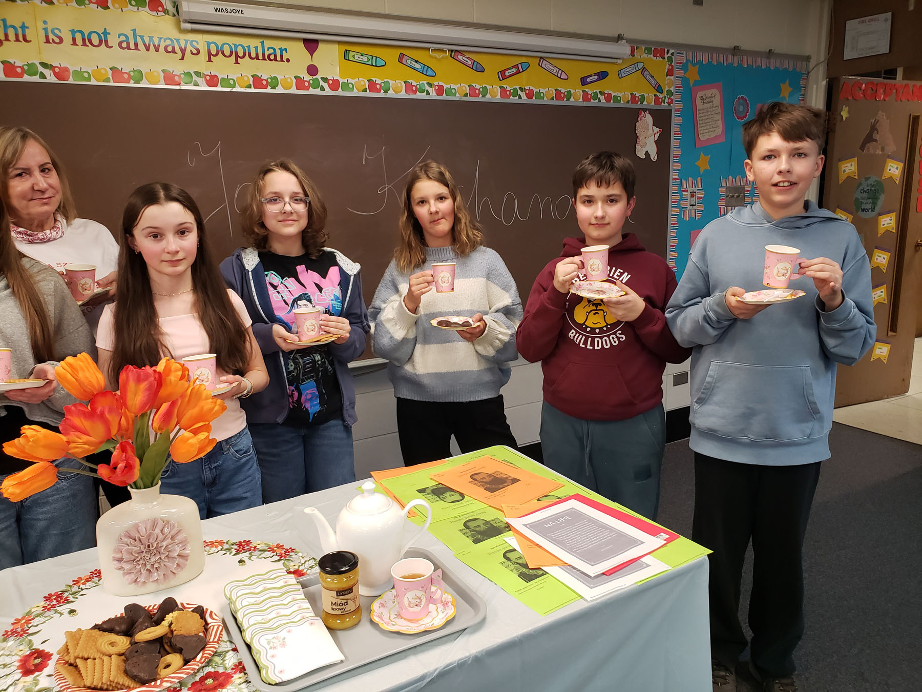Na lekcji panowała wesoła i serdeczna atmosfera. Nie brakowało uśmiechu, ciekawych spostrzeżeń oraz aktywnych dyskusji. Była to lekcja, która połączyła naukę z przyjemnością i z pewnością na długo pozostanie w naszej pamięci.