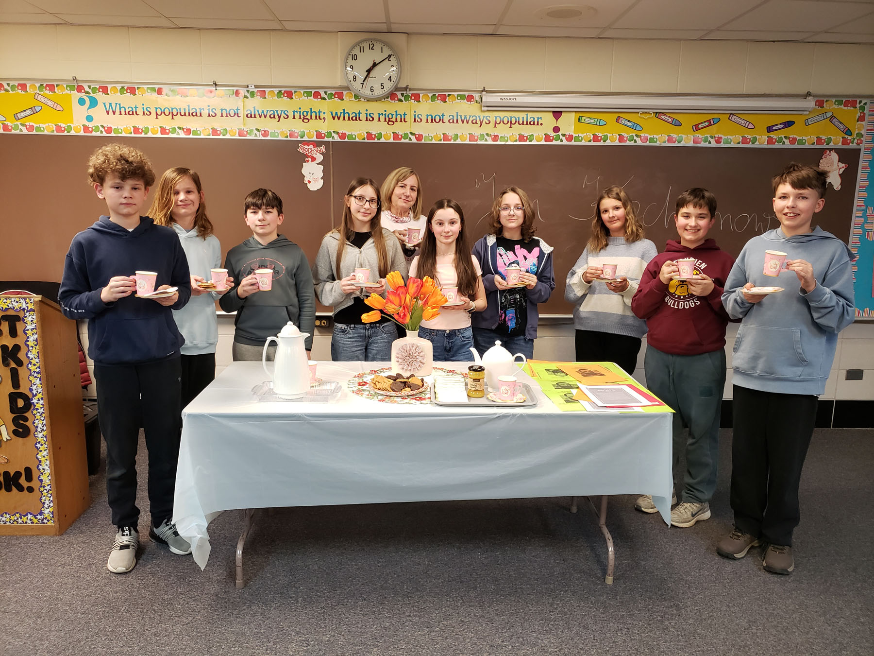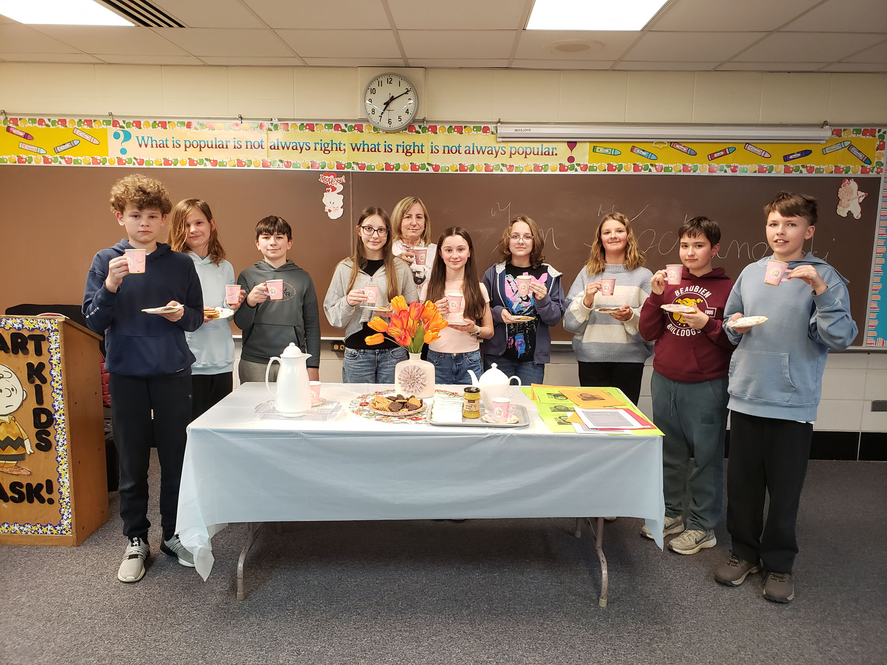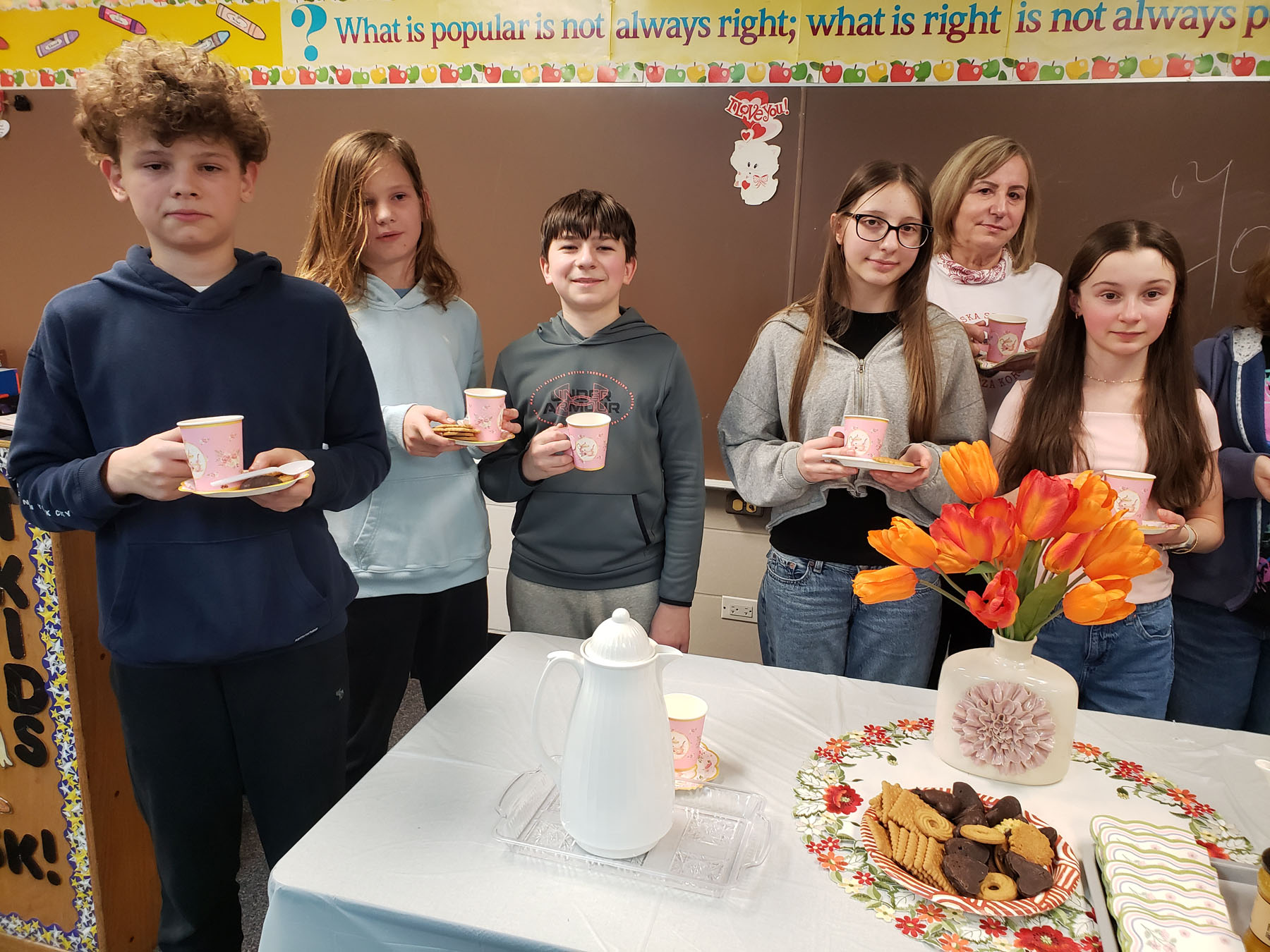 Na lekcji panowała wesoła i serdeczna atmosfera. Nie brakowało uśmiechu, ciekawych spostrzeżeń oraz aktywnych dyskusji. Była to lekcja, która połączyła naukę z przyjemnością i z pewnością na długo pozostanie w naszej pamięci.