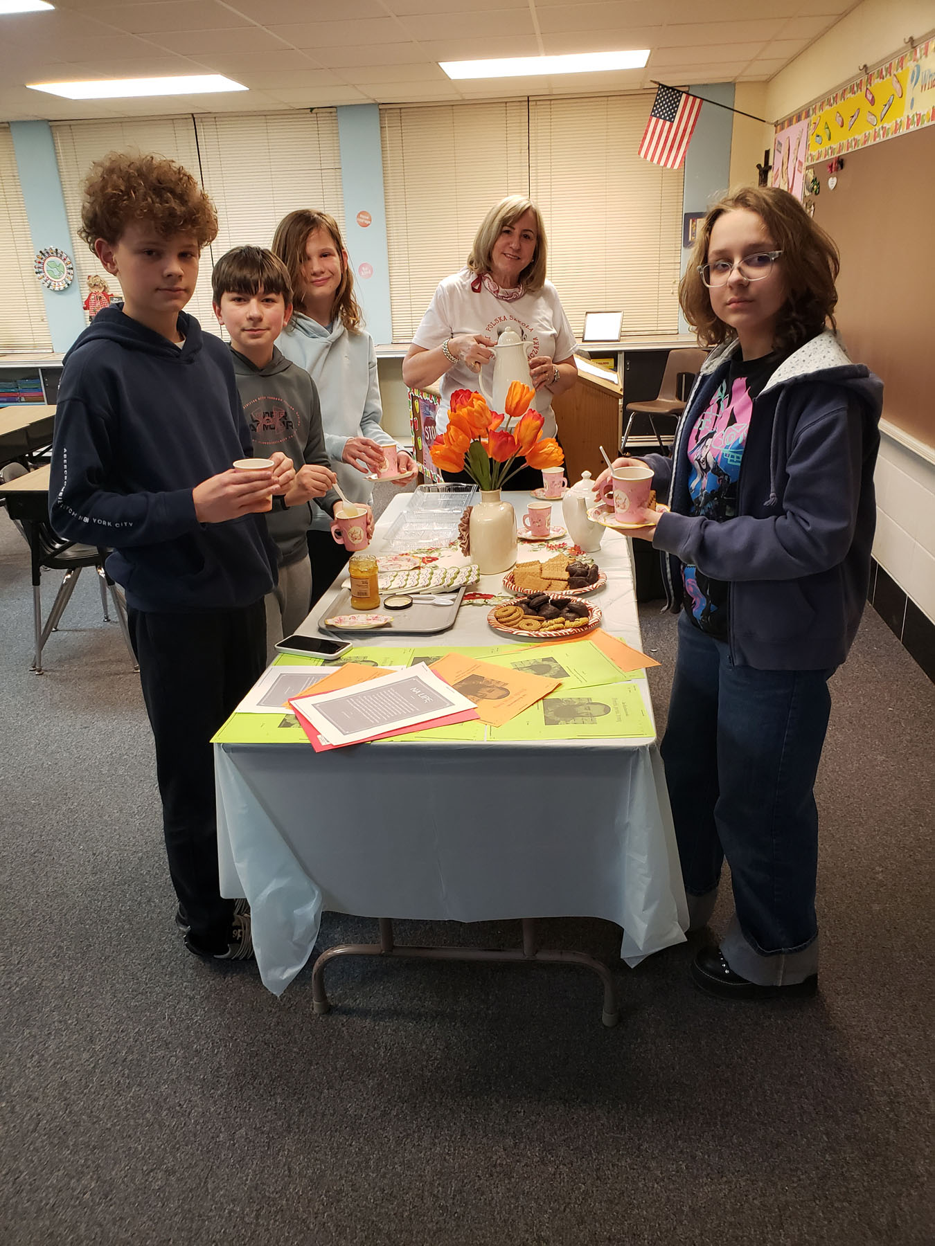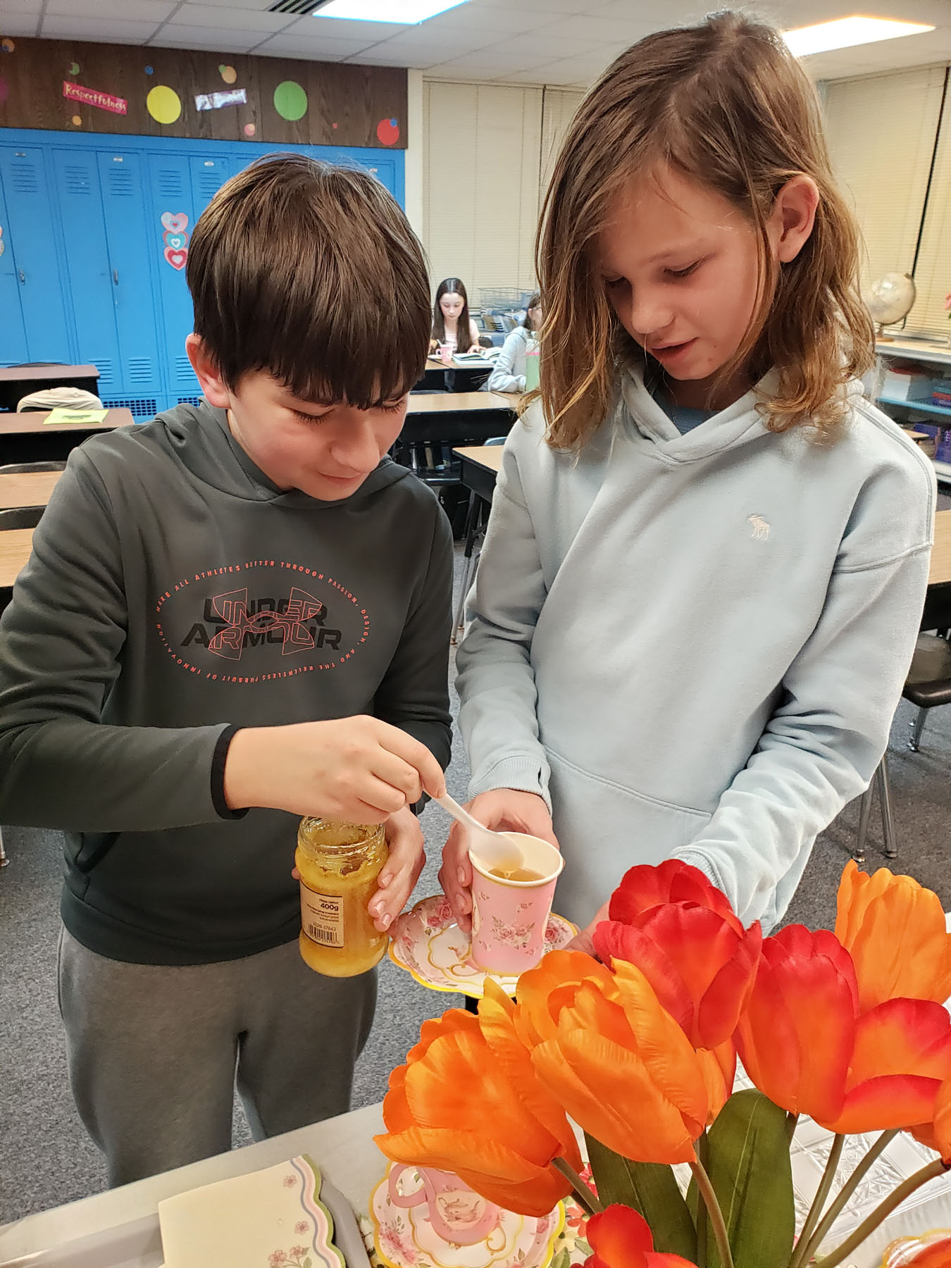 Po części literackiej przyszedł czas na krótkie nawiązanie do tematu zajęć. Uczniowie spróbowali herbaty z lipy z dodatkiem miodu, co pozwoliło im jeszcze lepiej poczuć klimat wiersza i wyobrazić sobie odpoczynek w cieniu drzewa.
